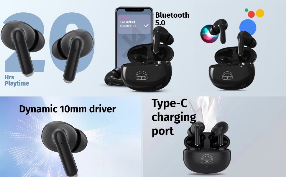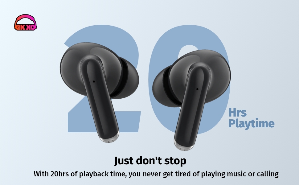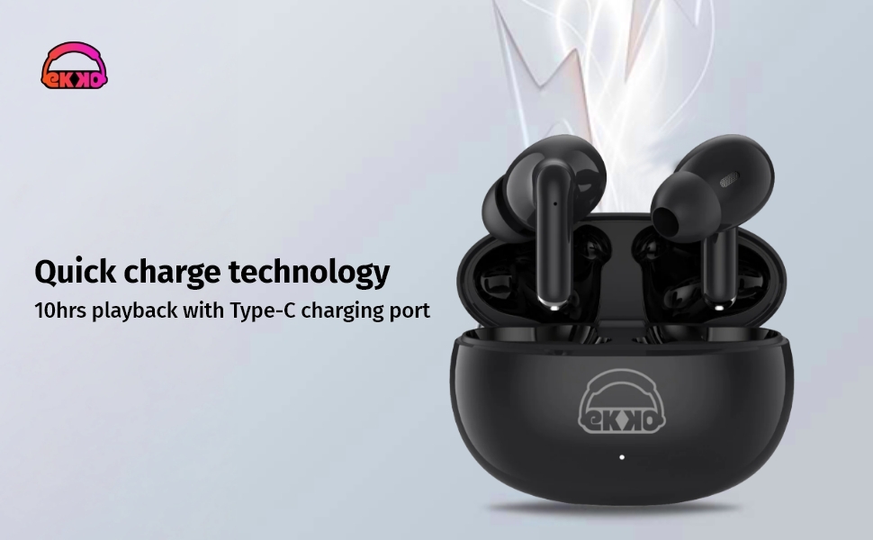 The EKKO Earbeats T05 True Wireless Earbuds are designed for an exceptional audio experience. With Environmental Noise Cancellation (ENC), they ensure clear call quality by reducing background noise. Enjoy up to 25 hours of playtime, making these earbuds perfect for long listening sessions. Equipped with 10mm drivers, they deliver massive bass that enhances your music experience. The Twin Connect feature allows easy pairing with multiple devices, while the water resistance makes them suitable for workouts and outdoor use. With built-in support for Siri and Google Assistant, accessing your voice assistant is seamless. Stylish and functional, the Earbeats T05 is an ideal choice for anyone seeking high-quality sound and convenience on the go.